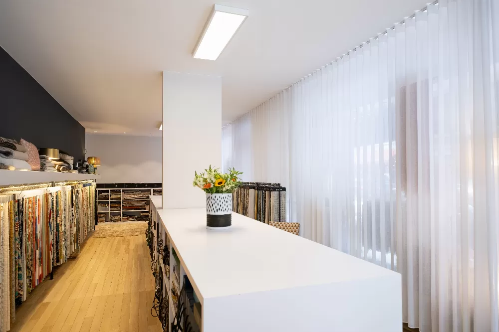 Magasin de tentures, voilages, stores, tapis, peinture, tissus d'ameublement et garnissage