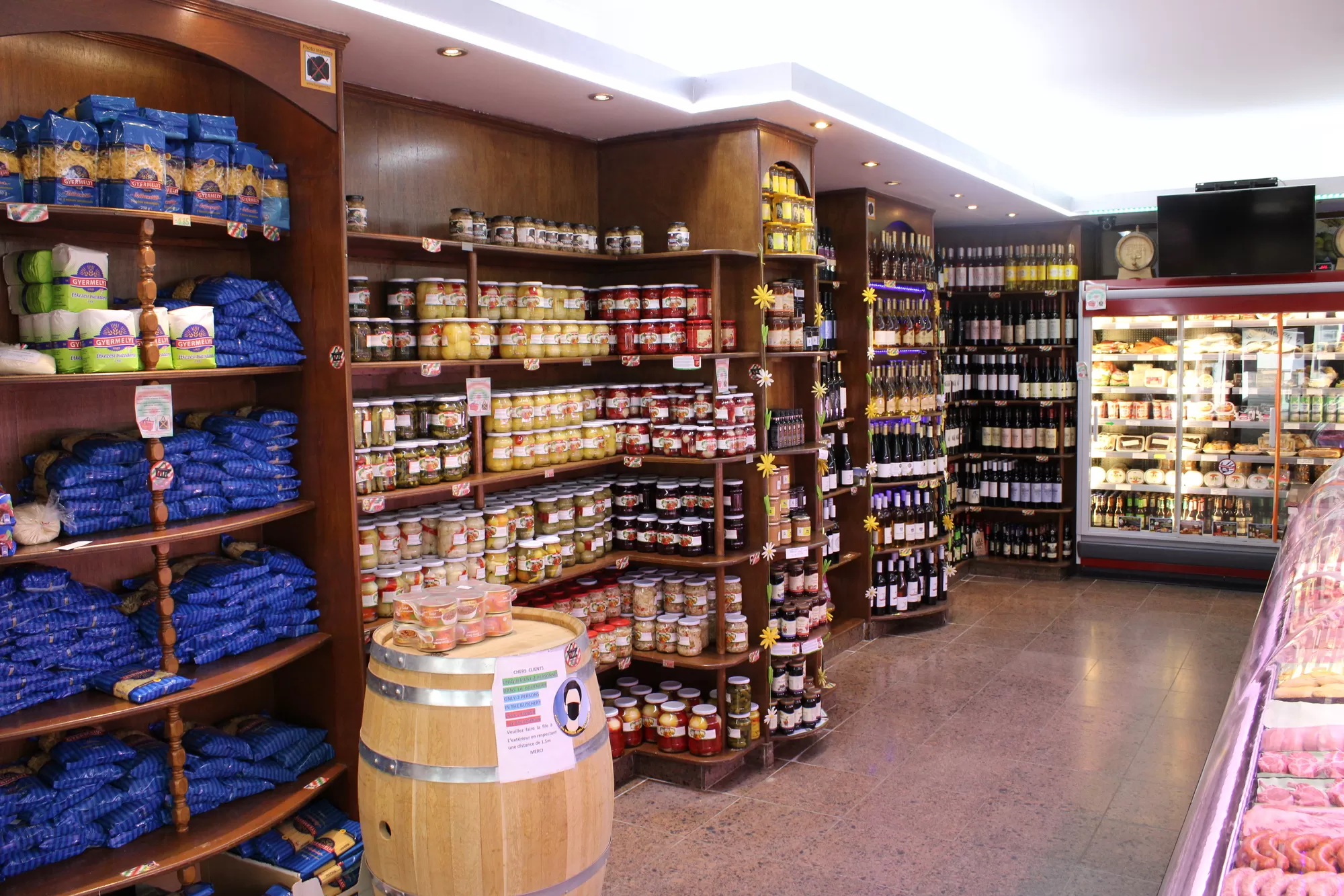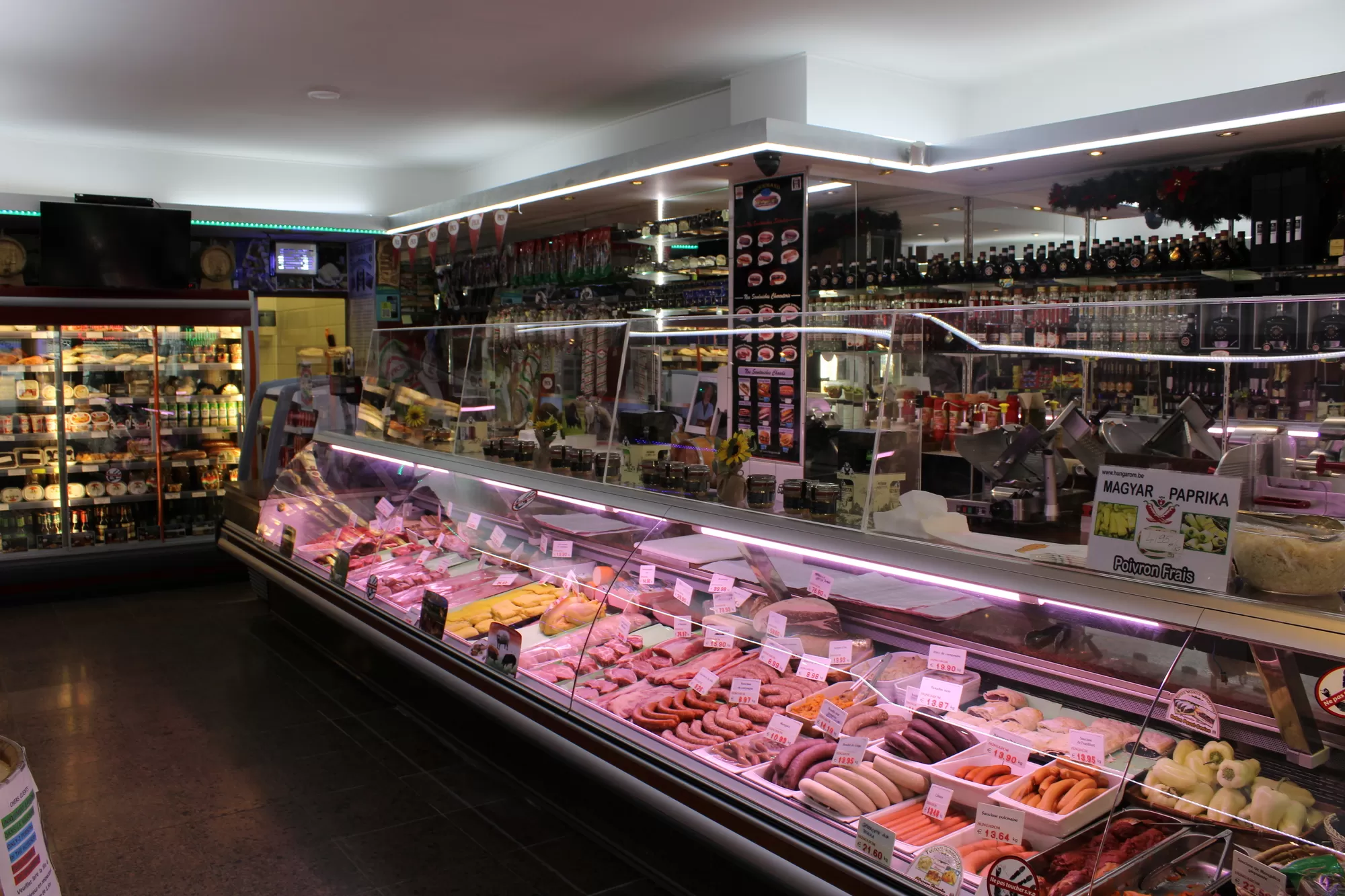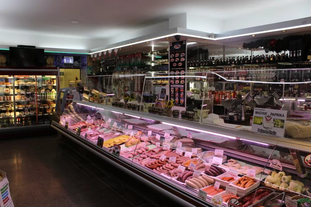 Vous pourrez y découvrir le porc Mangalica en provenance directe de la ferme (viande fraîche et charcuterie), des canards et des oies (foie gras, cuisse de canard, magret frais), une grande variété d'épices traditionnelles (piros Arany, éros pista gulyáskrém , torma, vegeta, etc.), une grande sélection de choucroutes natures ou préparées, ainsi que des salades marinées (cornichons, poivrons farcis ,salade mixte, ... ) et aussi de succulentes pâtisseries ( rétes ,beigli, pogacsa , bâtonnets fromage ,hayas papucs).