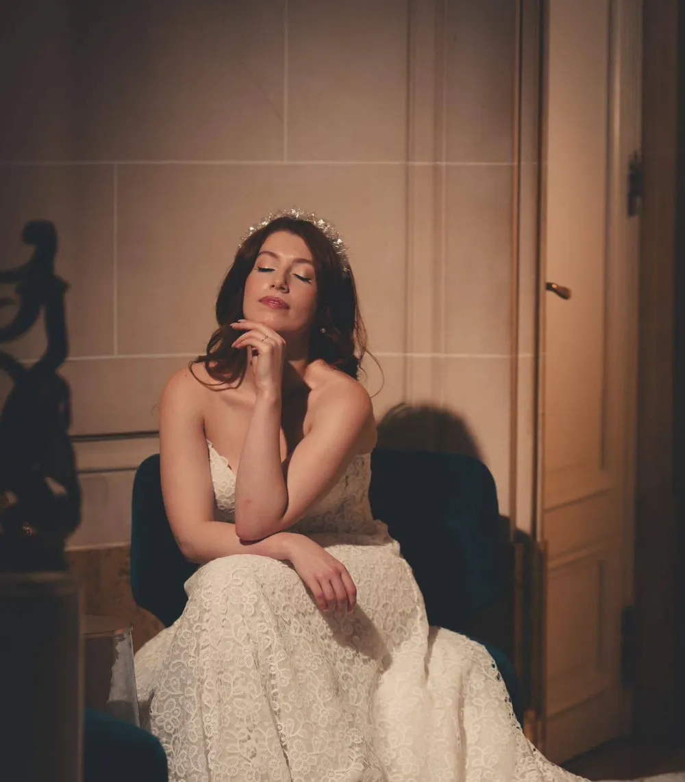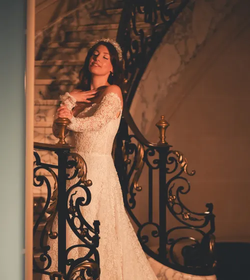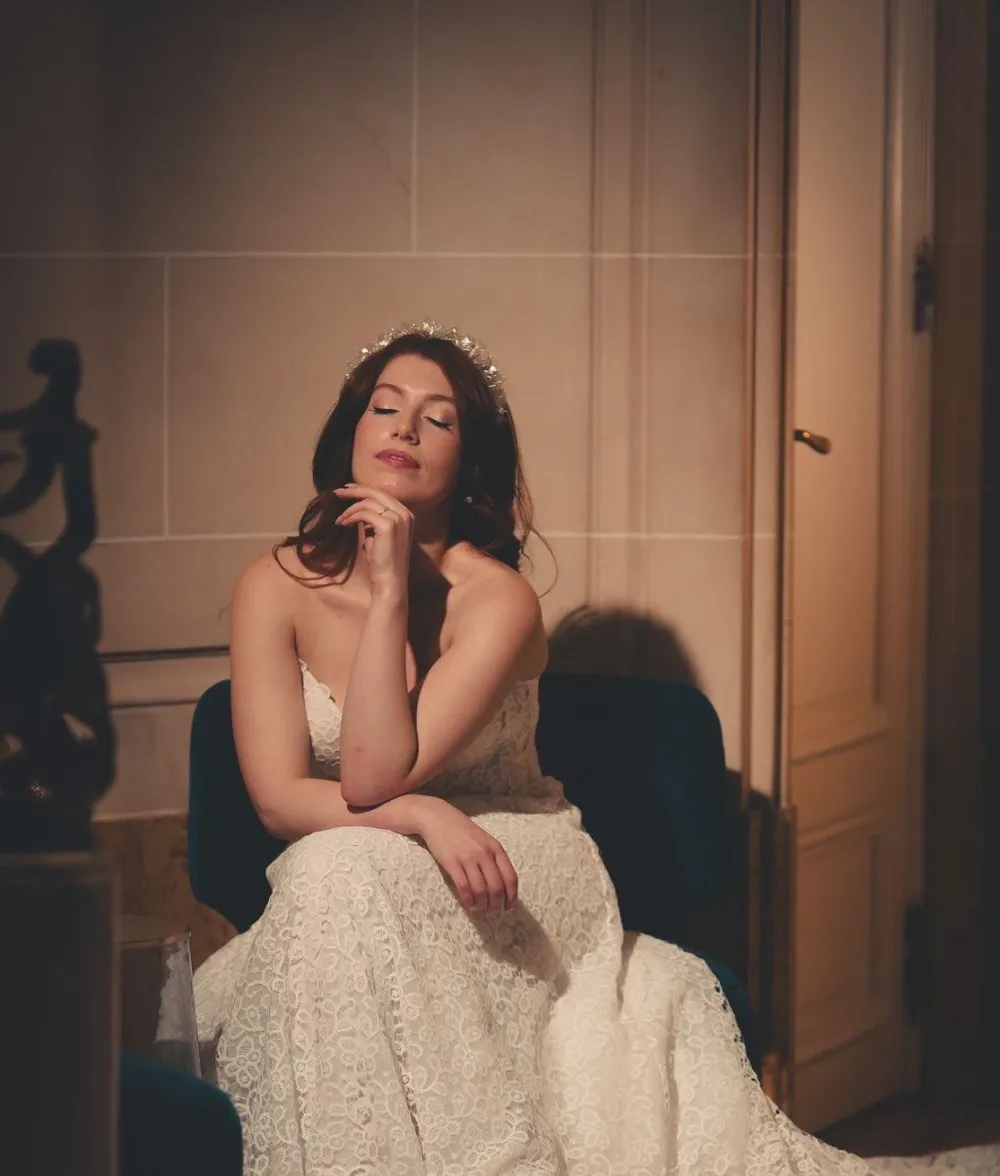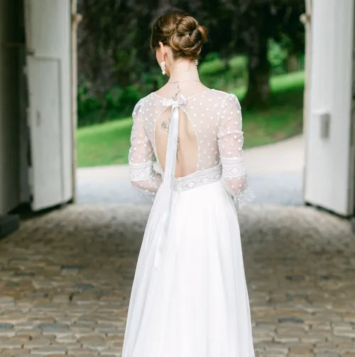 Dès mon premier passage au showroom, j'ai été immédiatement accueillie chaleureusement par Tesina. Je n'avais pas d'idée précise de la robe de mes rêves, juste une intuition. J'avais trouvé un modèle en ligne qui est finalement devenu le mien. Dès le début, j'ai été frappée par la qualité exceptionnelle des tissus : une sélection véritablement artisanale, exactement ce que je recherchais.