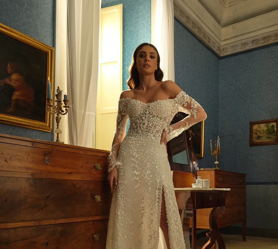 The first time I stepped into the showroom, I immediately felt warmly welcomed by Tesina. I didn’t have a precise vision of my dream dress—just a feeling. I had found a model online that eventually became the one. From the very beginning, I was struck by the exceptional quality of the fabrics: a truly artisanal selection, exactly what I had been searching for.